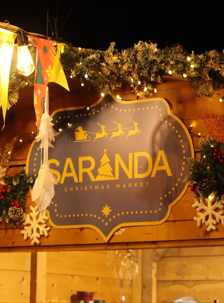The Saranda Christmas Market logo combines bold typography with festive symbolism to create a strong and recognizable seasonal identity.
